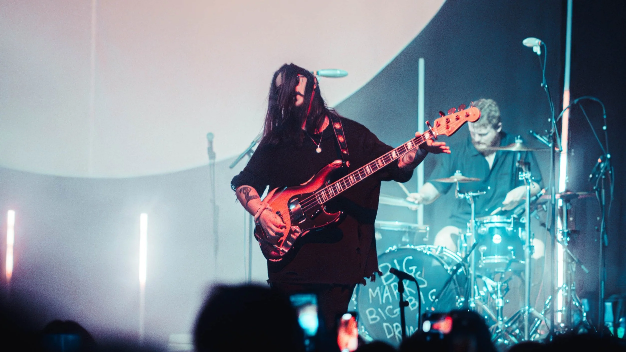 Clearly a band of Fender lovers, lead guitarist Joe Goldsmith has seemed to be favouring his Johnny Marr Signature Jaguar Fender, or an even newer Kurt Cobain signature Jag-Stang. Made from the same materials, both guitars would emit a similar tone.